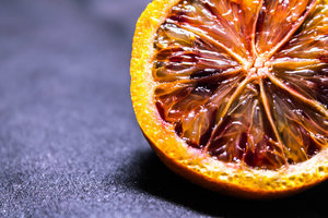 - les zestes d’une grosse orange (sanguine de préférence), très finement hachés, blanchis (cuits à ébullition) et rincés sous l’eau froide