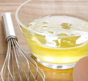- Dans un récipient (de petite taille de préférence) mettre le blanc d’oeuf, la moutarde, l’huile, 1 pincée de sel et de poivre.