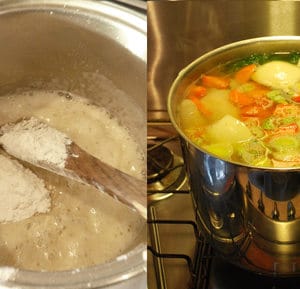 C’est un mélange de farine et de matière grasse, coloré à feu moyen. Le roux est toujours constitué d’autant de matière grasse que de farine, c’est ce qu’on appelle un tant pour tant.