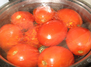 - Monder les tomates. Pour cela, les plonger dans l’eau bouillante pendant une petite minute.